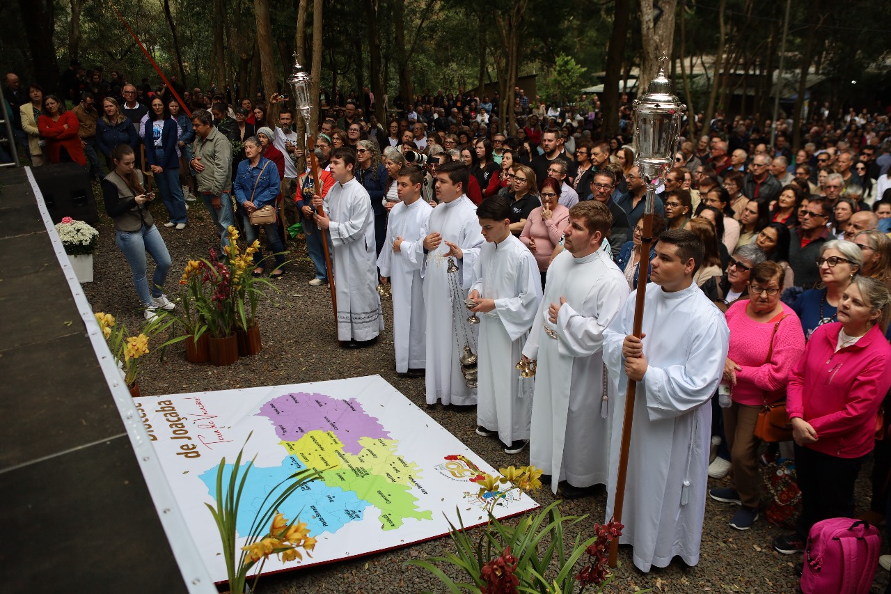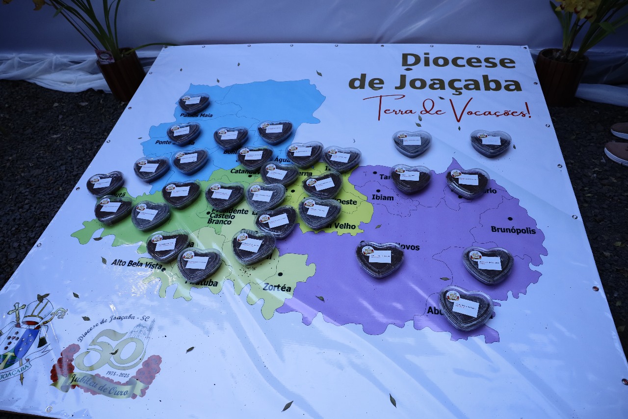 Durante a Santa Missa houve a realização da última etapa da Dinâmica da Terra que foi realizada anteriormente durante todas as visitas pastorais nas paróquias da Diocese. Nesta ocasião, cada paróquia indicou um ou mais representantes para que levassem a terra até o mapa que forma “A terra de vocações” da Diocese de Joaçaba. Foi um momento especial que encerrou esta iniciativa que movimentou todas as 626 comunidades da Diocese de Joaçaba.