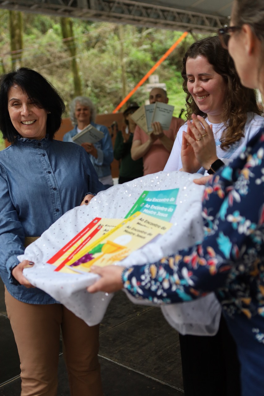 No período da tarde, houve uma belíssima apresentação do Grupo Teatral Diocesano Elohim, além do lançamento do livro do Jubileu de Ouro produzido em parceria com a Editora Unoesc e dos novos itinerários da Catequese que a partir deste ano passam uma nova configuração de diagramação e de proposta de atuação junto às comunidades. Após estes momentos, houve a bênção de envio dos participantes que, em caravana, retornaram para suas paróquias e comunidades.