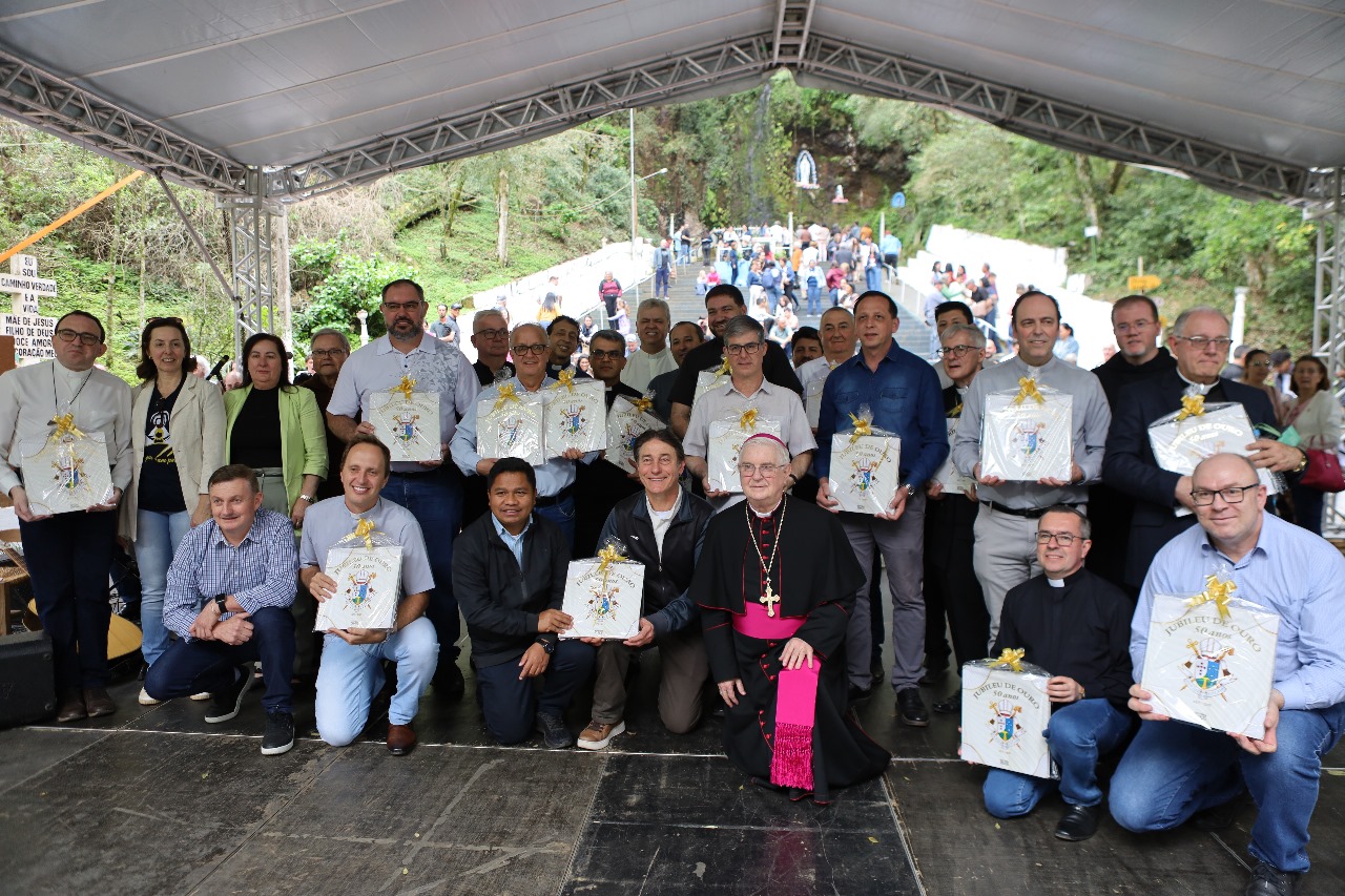 “Estou emocionado com tudo o que vivemos com a beleza deste dia. Com o Jubileu de Ouro da nossa Diocese, tivemos a oportunidade de valorizar a nossa história, celebrar o presente e cuidar do futuro da nossa comunidade que é o eixo central do Evangelho de Jesus Cristo. Minha gratidão a todas as pessoas envolvidas para tudo isso acontecesse da melhor forma possível nesta linda terra de vocações chamada Diocese de Joaçaba”, enfatizou Dom Mário, bispo diocesano.