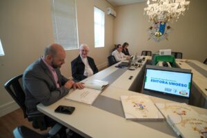 Na oportunidade, Dom Mário enfatizou a importância desta parceria entre a Editora e a Unoesc. “Estamos muito felizes com o resultado alcançado, na certeza de que este registro histórico servirá de base para a valorização do nosso passado, fonte de inspiração para o presente e de suporte para o futuro da nossa Diocese de Joaçaba. Agradecemos a parceria com a Unoesc e a sua Editora que nos brindam com este lindíssimo projeto que estará disponível em nossas paróquias e comunidades”, comentou.