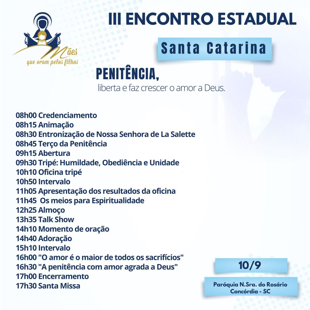 Com grande alegria e fervor, a Paróquia Nossa Senhora do Rosário, localizada no município de Concórdia, receberá o Encontro Estadual do Movimento Mães que oram pelos filhos, que acontecerá no dia 10 de setembro. O evento é a união de todos os grupos existentes no estado de Santa Catarina para um dia intenso de muito louvor, graças e bênçãos.