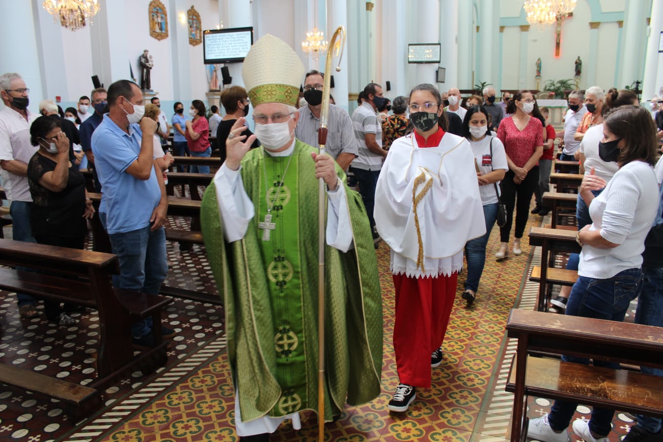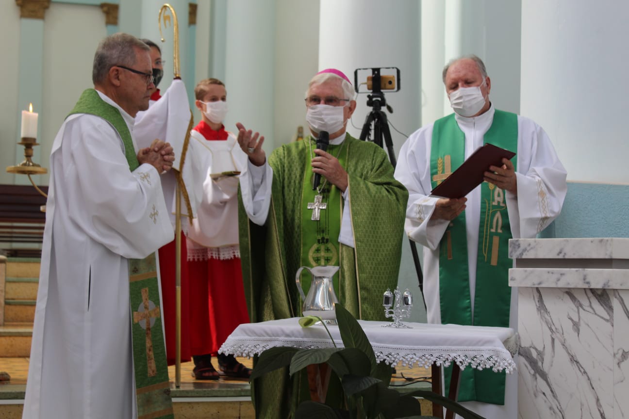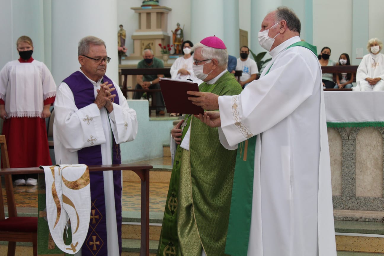 Aconteceu na manhã do domingo (30) a Santa Missa de posse do novo pároco da Paróquia São Paulo Apóstolo, Frei Justino Stolf. A celebração foi presidida por Dom Frei Mário Marquez e concelebrada pelos freis da Paróquia.