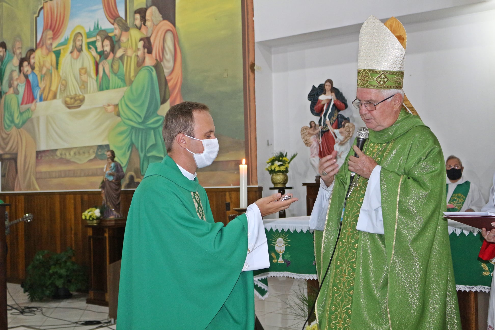 Na tarde do sábado (05), o bispo diocesano Dom Frei Mário Marquez, realizou a posse canônica do Padre Tiago Willian Souza como pároco da Paróquia Santo Antônio de Pádua localizada no município de Ponte Serrada.