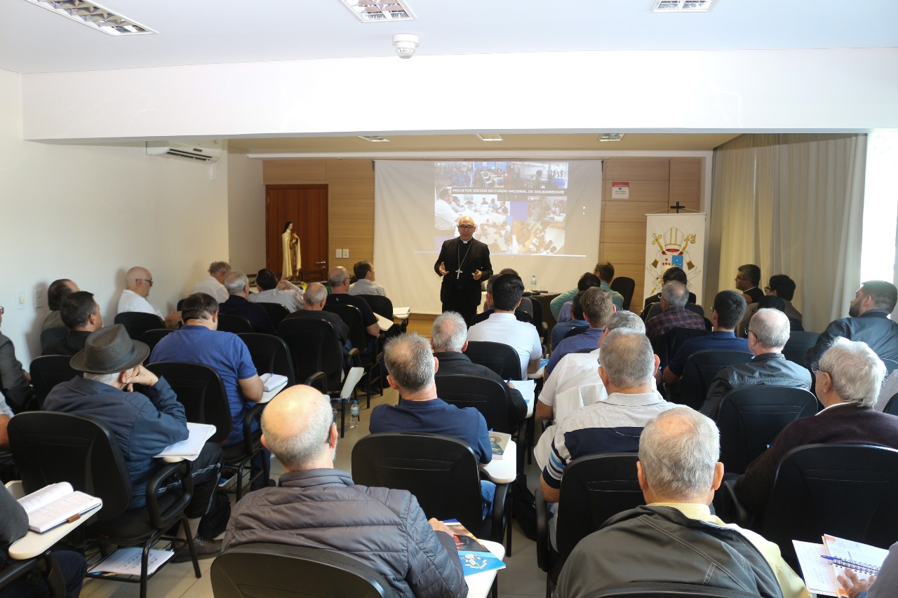 A partir do tema “Sinodalidade”, o Clero da Diocese de Joaçaba participou de uma importante formação ministrada pelo Secretário Geral da CNBB, Dom Ricardo Hoepers, que esteve presente em nossa Diocese neste período de preparação ao Jubileu de Ouro Diocesano.